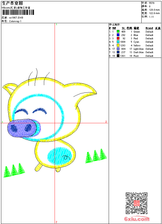 - 版带文件需绣花软件方可打开,可配色打印导出各种格式或直接上机绣。如无绣花软件可下载1:1模拟效果图。