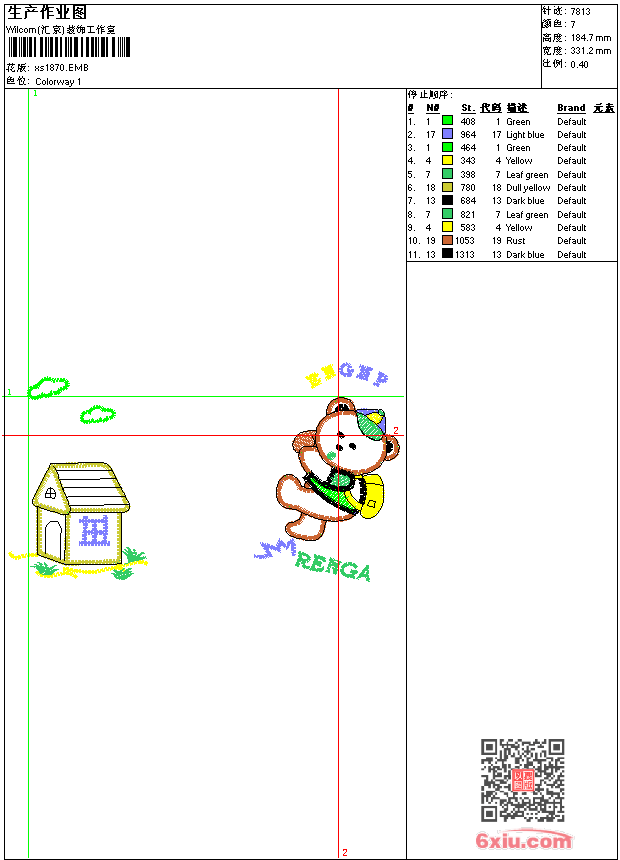 - 版带文件需绣花软件方可打开,可配色打印导出各种格式或直接上机绣。如无绣花软件可下载1:1模拟效果图。