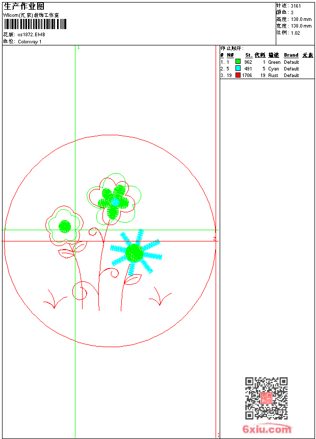 - 版带文件需绣花软件方可打开,可配色打印导出各种格式或直接上机绣。如无绣花软件可下载1:1模拟效果图。