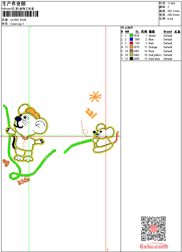 - 版带文件需绣花软件方可打开,可配色打印导出各种格式或直接上机绣。如无绣花软件可下载1:1模拟效果图。