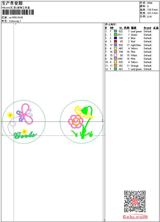 - 版带文件需绣花软件方可打开,可配色打印导出各种格式或直接上机绣。如无绣花软件可下载1:1模拟效果图。