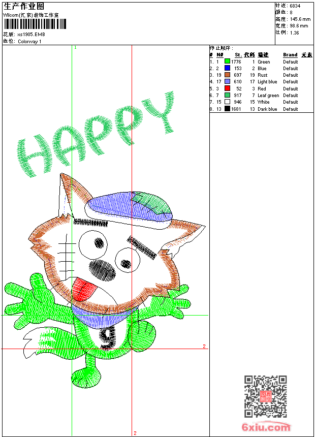 - 版带文件需绣花软件方可打开,可配色打印导出各种格式或直接上机绣。如无绣花软件可下载1:1模拟效果图。