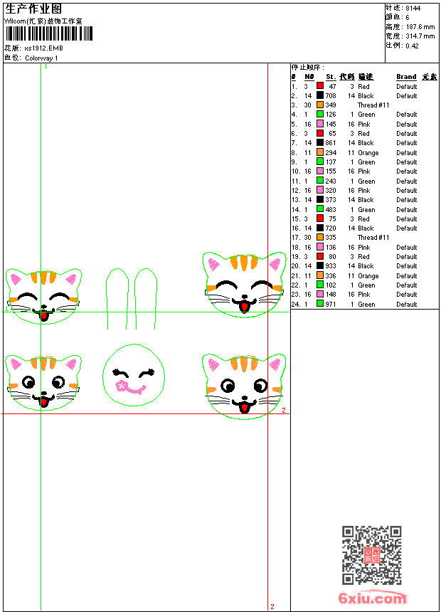- 版带文件需绣花软件方可打开,可配色打印导出各种格式或直接上机绣。如无绣花软件可下载1:1模拟效果图。