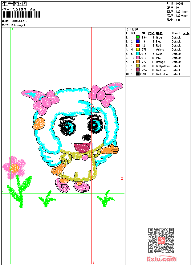- emb花版参数: 大小:90.00 KB / 尺寸:122*127[毫米] / 针数:10308针 / 线色:10 / 格式:emb / 版本:9
