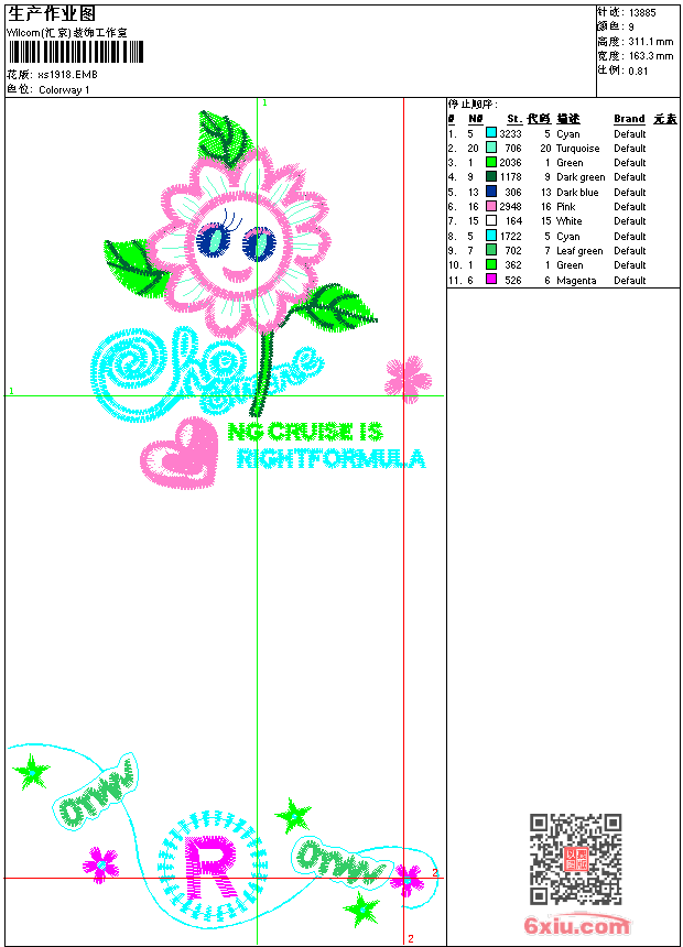 - 版带文件需绣花软件方可打开,可配色打印导出各种格式或直接上机绣。如无绣花软件可下载1:1模拟效果图。