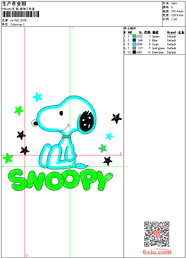 - 版带文件需绣花软件方可打开,可配色打印导出各种格式或直接上机绣。如无绣花软件可下载1:1模拟效果图。