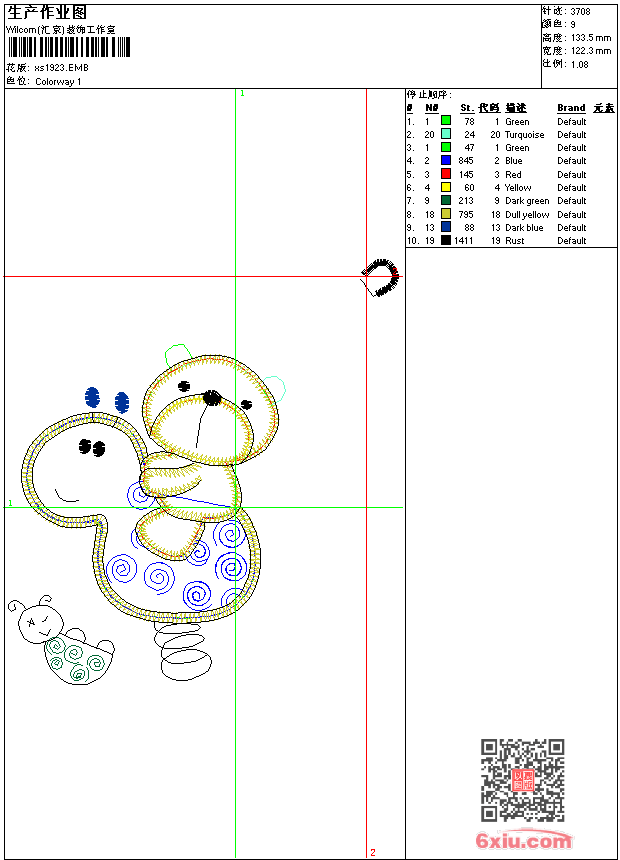 - 版带文件需绣花软件方可打开,可配色打印导出各种格式或直接上机绣。如无绣花软件可下载1:1模拟效果图。
