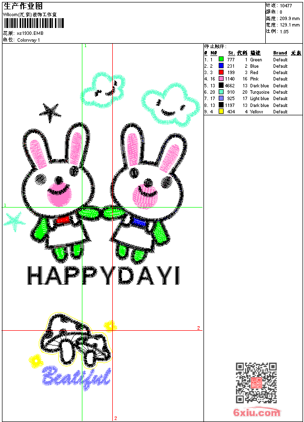 - 版带文件需绣花软件方可打开,可配色打印导出各种格式或直接上机绣。如无绣花软件可下载1:1模拟效果图。