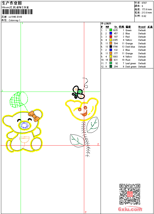 - 版带文件需绣花软件方可打开,可配色打印导出各种格式或直接上机绣。如无绣花软件可下载1:1模拟效果图。
