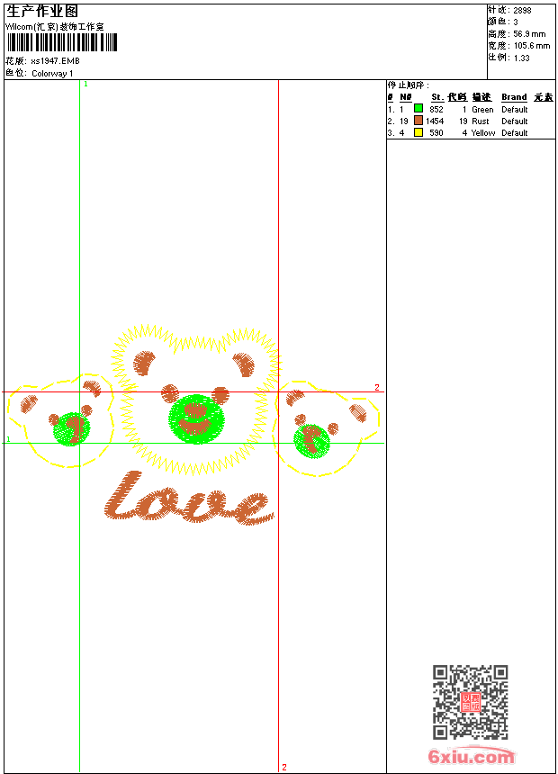 - 版带文件需绣花软件方可打开,可配色打印导出各种格式或直接上机绣。如无绣花软件可下载1:1模拟效果图。