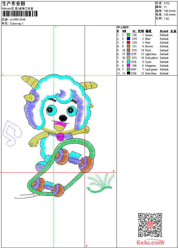 - 版带文件需绣花软件方可打开,可配色打印导出各种格式或直接上机绣。如无绣花软件可下载1:1模拟效果图。