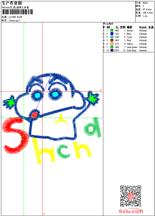 - 版带文件需绣花软件方可打开,可配色打印导出各种格式或直接上机绣。如无绣花软件可下载1:1模拟效果图。