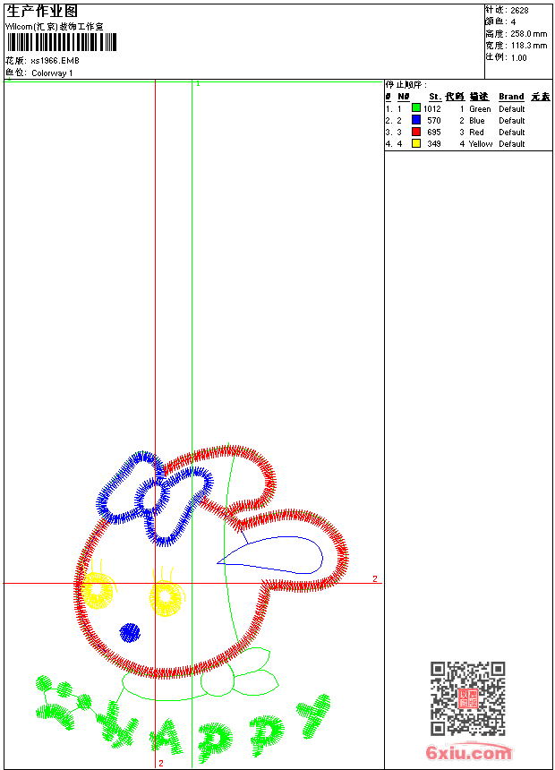 - 版带文件需绣花软件方可打开,可配色打印导出各种格式或直接上机绣。如无绣花软件可下载1:1模拟效果图。