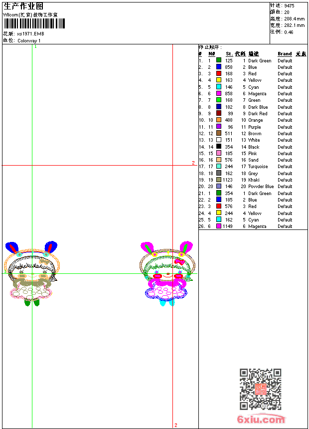 - 版带文件需绣花软件方可打开,可配色打印导出各种格式或直接上机绣。如无绣花软件可下载1:1模拟效果图。
