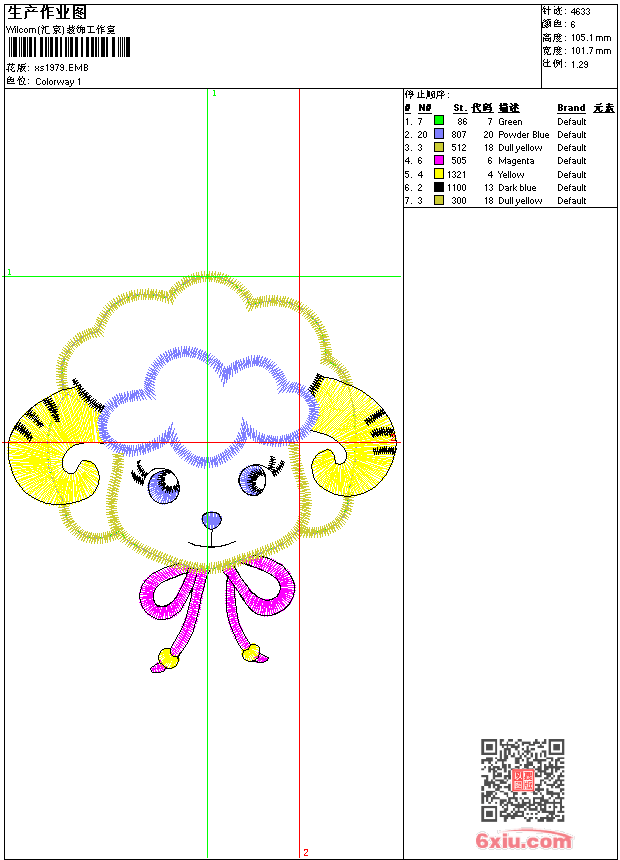 - emb花版参数: 大小:50.00 KB / 尺寸:102*105[毫米] / 针数:4633针 / 线色:6 / 格式:emb / 版本:9