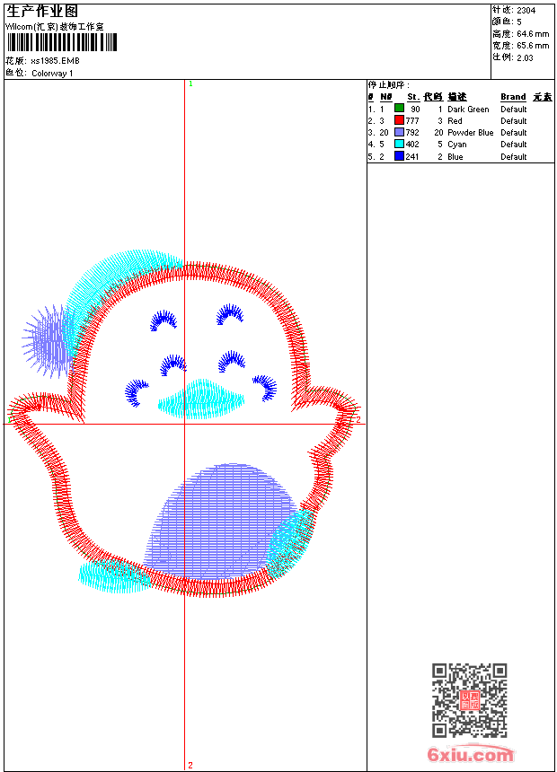 - emb花版参数: 大小:29.50 KB / 尺寸:66*65[毫米] / 针数:2305针 / 线色:5 / 格式:emb / 版本:9