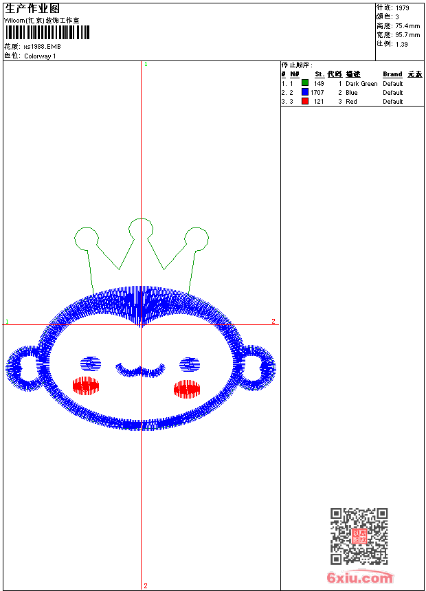 - 版带文件需绣花软件方可打开,可配色打印导出各种格式或直接上机绣。如无绣花软件可下载1:1模拟效果图。