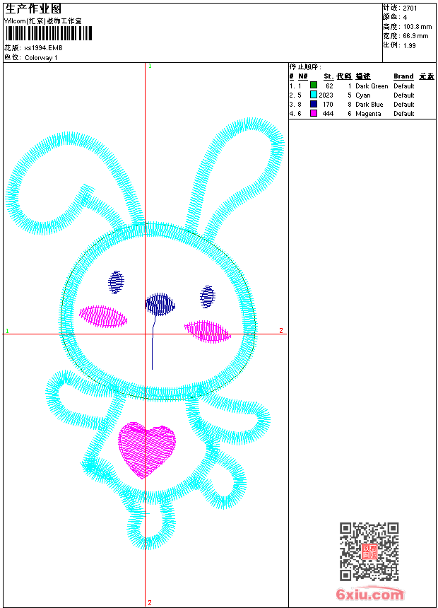 - 版带文件需绣花软件方可打开,可配色打印导出各种格式或直接上机绣。如无绣花软件可下载1:1模拟效果图。
