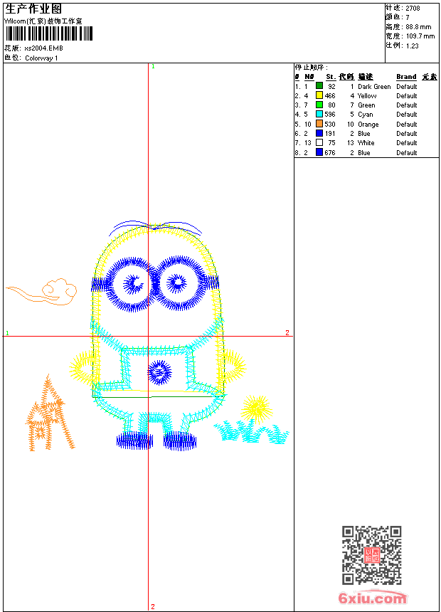 - 版带文件需绣花软件方可打开,可配色打印导出各种格式或直接上机绣。如无绣花软件可下载1:1模拟效果图。