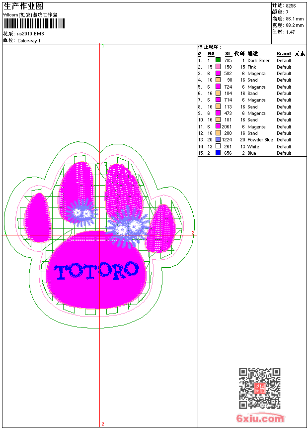 - 版带文件需绣花软件方可打开,可配色打印导出各种格式或直接上机绣。如无绣花软件可下载1:1模拟效果图。