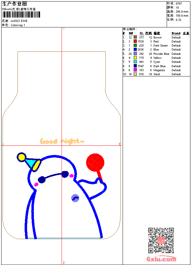 - 版带文件需绣花软件方可打开,可配色打印导出各种格式或直接上机绣。如无绣花软件可下载1:1模拟效果图。