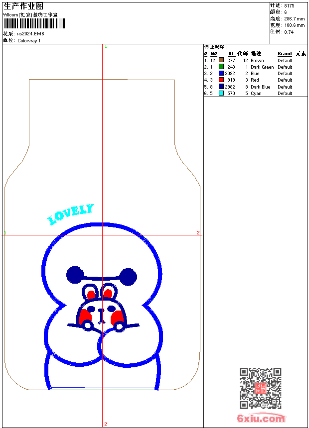 - emb花版参数: 大小:54.50 KB / 尺寸:181*288[毫米] / 针数:8259针 / 线色:6 / 格式:emb / 版本:9