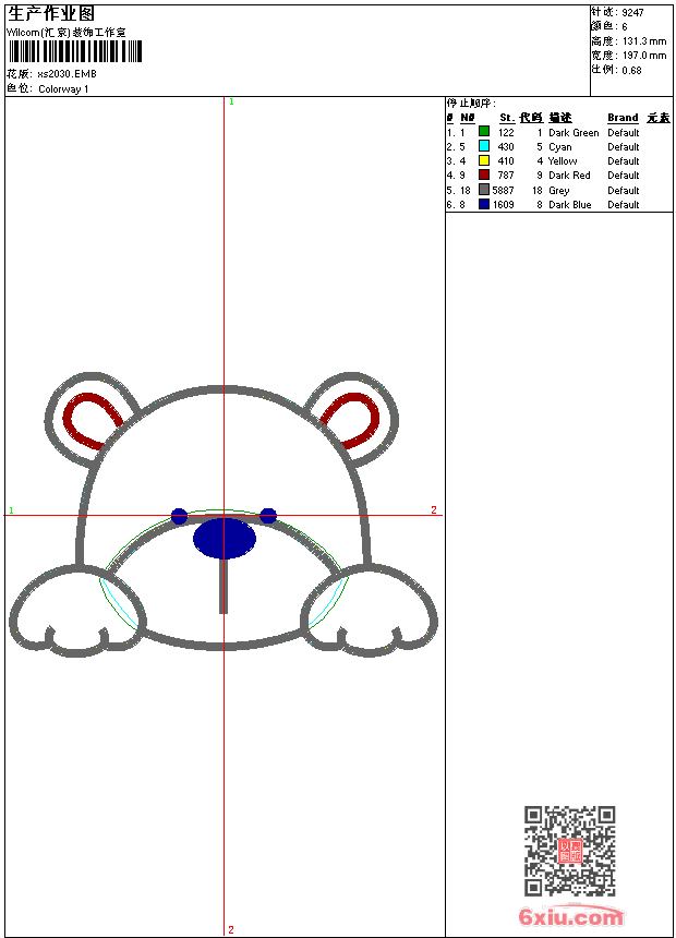 - 版带文件需绣花软件方可打开,可配色打印导出各种格式或直接上机绣。如无绣花软件可下载1:1模拟效果图。
