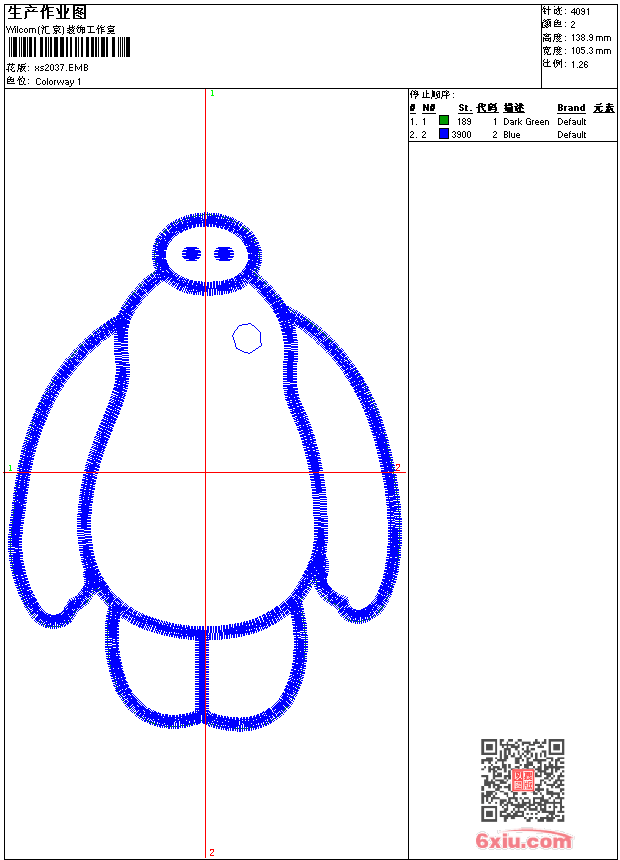 - emb花版参数: 大小:44.50 KB / 尺寸:105*139[毫米] / 针数:4107针 / 线色:2 / 格式:emb / 版本:9