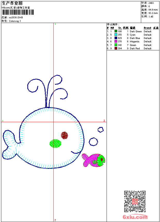 - emb花版参数: 大小:39.50 KB / 尺寸:93*119[毫米] / 针数:2454针 / 线色:6 / 格式:emb / 版本:9