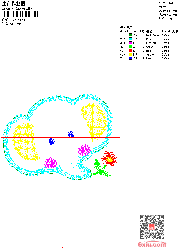 - emb花版参数: 大小:36.00 KB / 尺寸:69*52[毫米] / 针数:2149针 / 线色:7 / 格式:emb / 版本:9