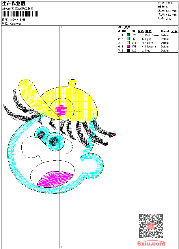 - emb花版参数: 大小:31.50 KB / 尺寸:63*64[毫米] / 针数:2823针 / 线色:5 / 格式:emb / 版本:9