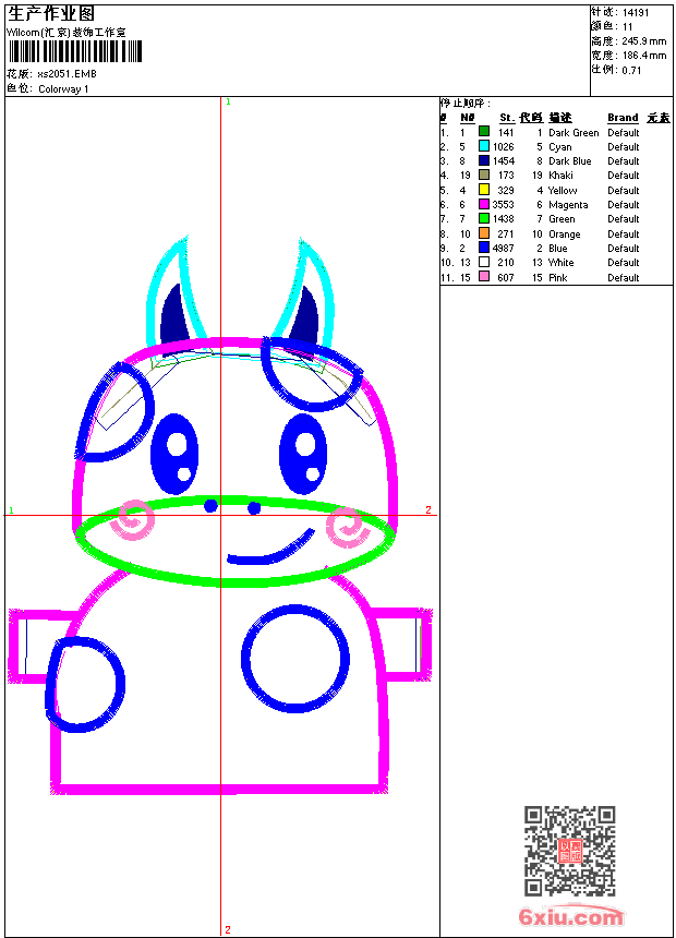 - 版带文件需绣花软件方可打开,可配色打印导出各种格式或直接上机绣。如无绣花软件可下载1:1模拟效果图。