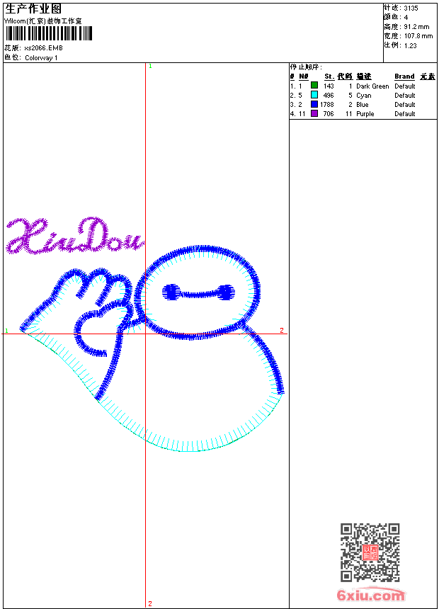 - 版带文件需绣花软件方可打开,可配色打印导出各种格式或直接上机绣。如无绣花软件可下载1:1模拟效果图。