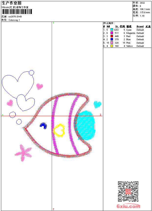 - emb花版参数: 大小:37.50 KB / 尺寸:116*106[毫米] / 针数:3041针 / 线色:6 / 格式:emb / 版本:9