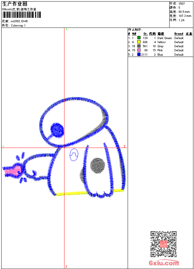 - 版带文件需绣花软件方可打开,可配色打印导出各种格式或直接上机绣。如无绣花软件可下载1:1模拟效果图。