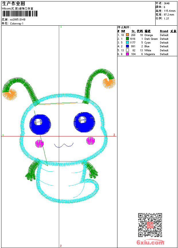 - 版带文件需绣花软件方可打开,可配色打印导出各种格式或直接上机绣。如无绣花软件可下载1:1模拟效果图。