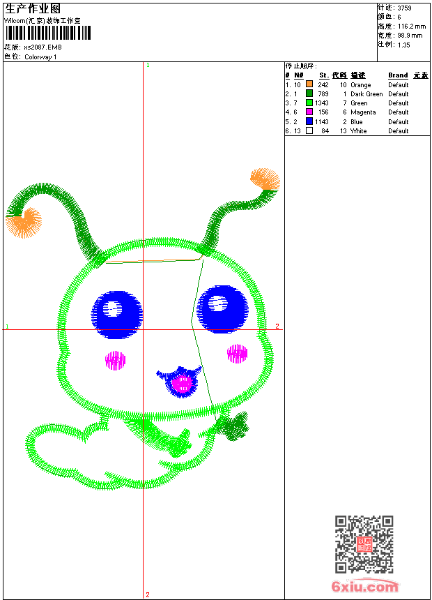 - 版带文件需绣花软件方可打开,可配色打印导出各种格式或直接上机绣。如无绣花软件可下载1:1模拟效果图。