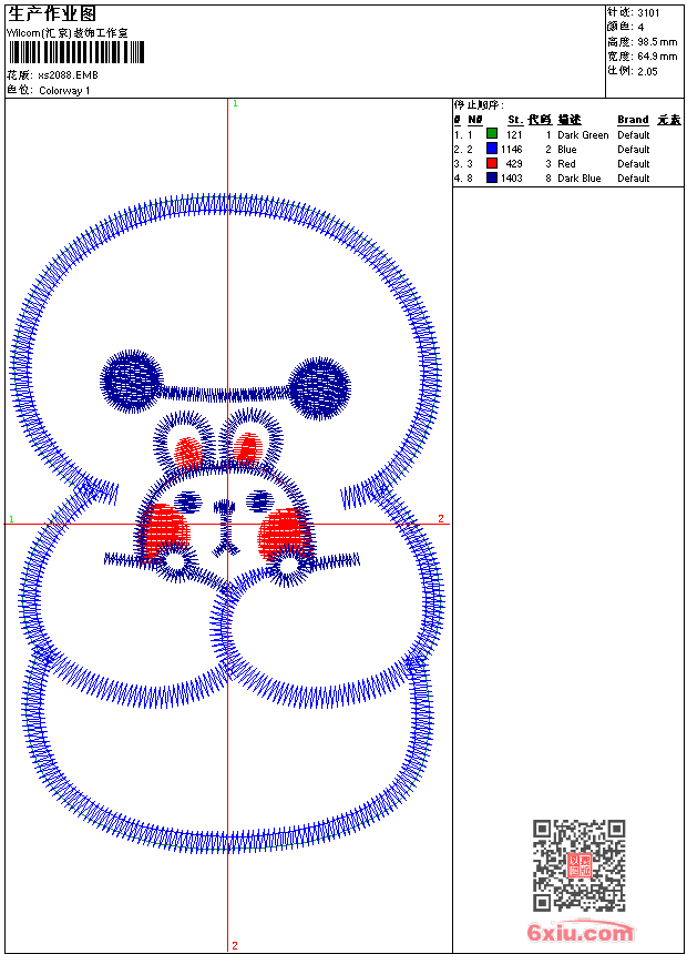 - 版带文件需绣花软件方可打开,可配色打印导出各种格式或直接上机绣。如无绣花软件可下载1:1模拟效果图。