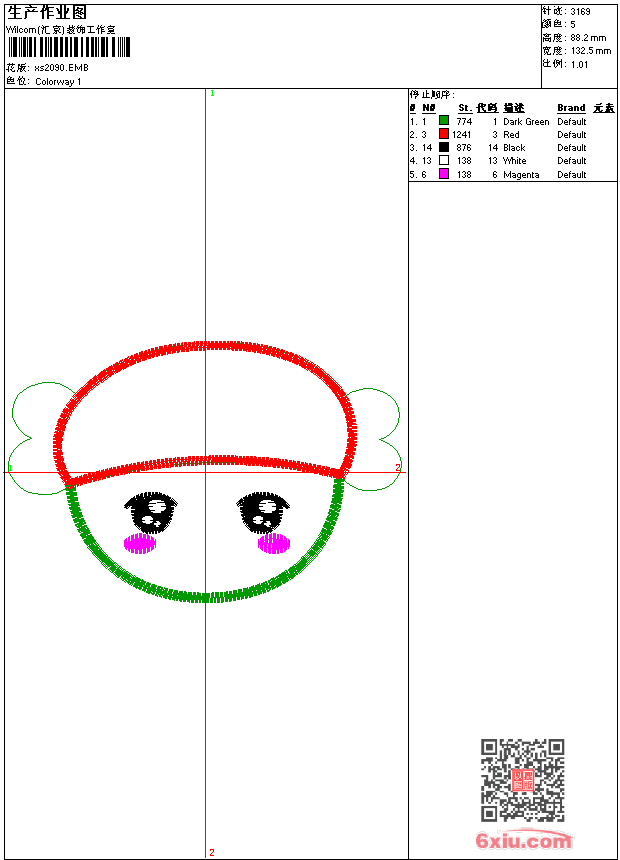 - 版带文件需绣花软件方可打开,可配色打印导出各种格式或直接上机绣。如无绣花软件可下载1:1模拟效果图。