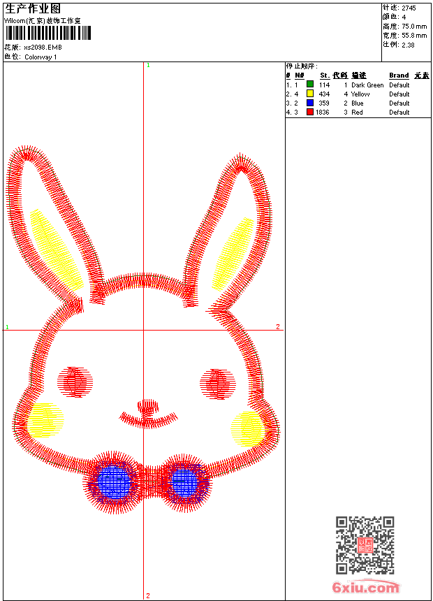 - 版带文件需绣花软件方可打开,可配色打印导出各种格式或直接上机绣。如无绣花软件可下载1:1模拟效果图。