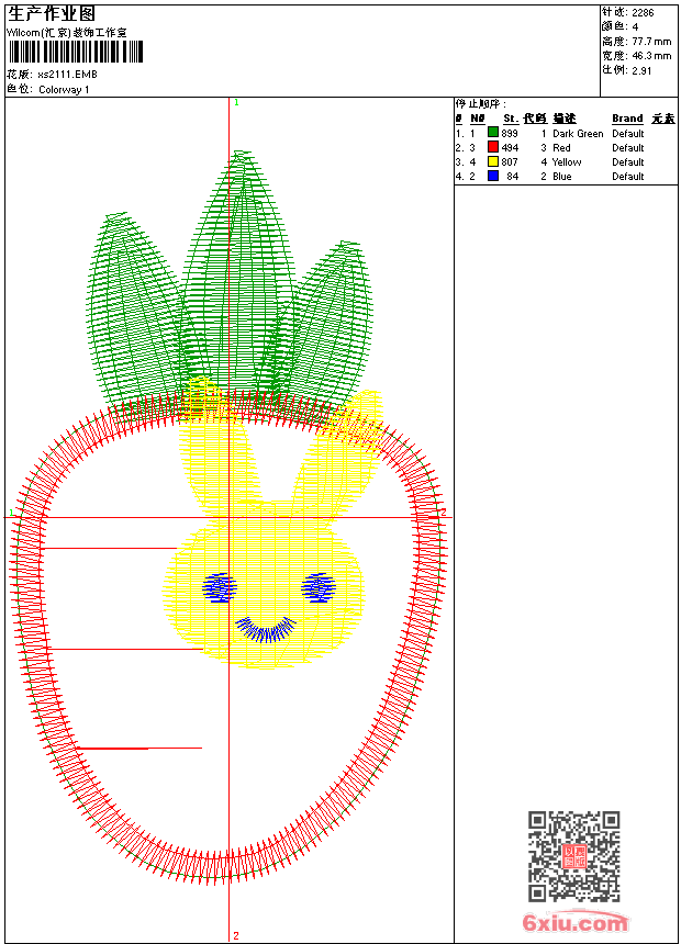 - 版带文件需绣花软件方可打开,可配色打印导出各种格式或直接上机绣。如无绣花软件可下载1:1模拟效果图。