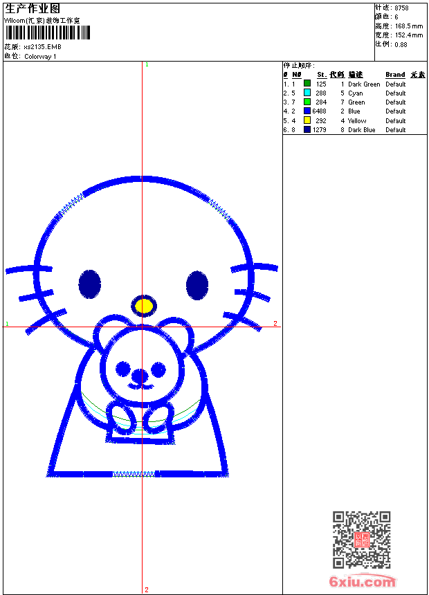 - emb花版参数: 大小:57.50 KB / 尺寸:152*168[毫米] / 针数:8758针 / 线色:6 / 格式:emb / 版本:9