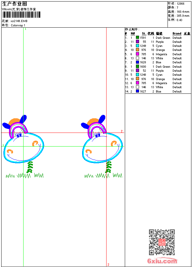 - 版带文件需绣花软件方可打开,可配色打印导出各种格式或直接上机绣。如无绣花软件可下载1:1模拟效果图。