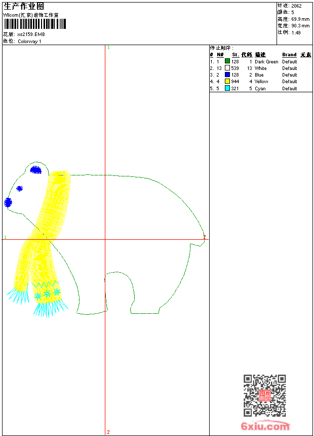 - 版带文件需绣花软件方可打开,可配色打印导出各种格式或直接上机绣。如无绣花软件可下载1:1模拟效果图。