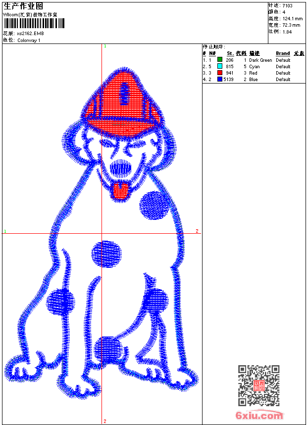 - 版带文件需绣花软件方可打开,可配色打印导出各种格式或直接上机绣。如无绣花软件可下载1:1模拟效果图。