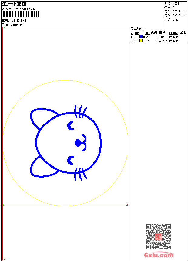 - emb花版参数: 大小:50.00 KB / 尺寸:349*350[毫米] / 针数:10538针 / 线色:2 / 格式:emb / 版本:9