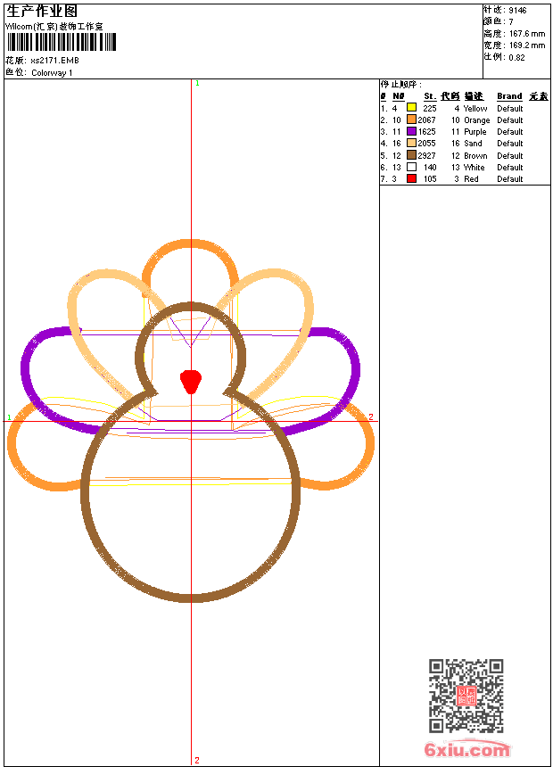 - emb花版参数: 大小:58.00 KB / 尺寸:169*168[毫米] / 针数:9149针 / 线色:7 / 格式:emb / 版本:9