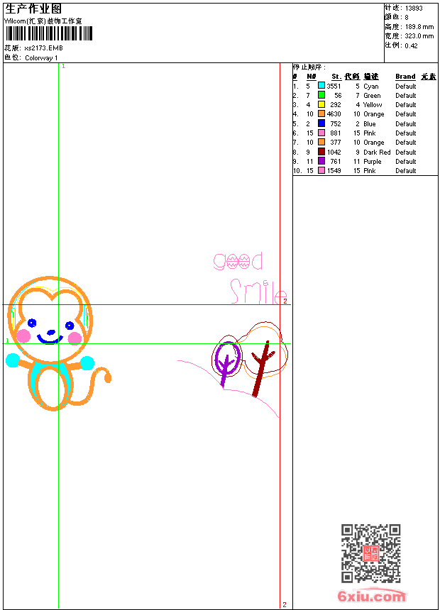 - 版带文件需绣花软件方可打开,可配色打印导出各种格式或直接上机绣。如无绣花软件可下载1:1模拟效果图。