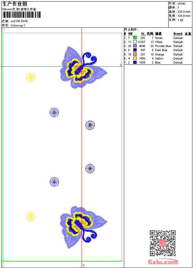 - emb花版参数: 大小:116.50 KB / 尺寸:120*230[毫米] / 针数:20343针 / 线色:7 / 格式:emb / 版本:9