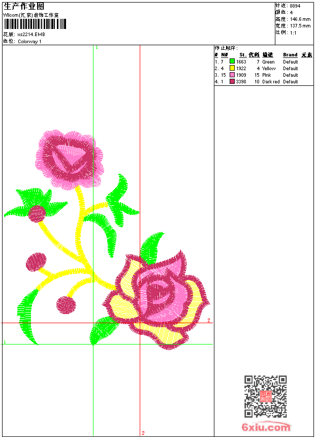 - emb花版参数: 大小:60.50 KB / 尺寸:137*147[毫米] / 针数:8894针 / 线色:4 / 格式:emb / 版本:9
